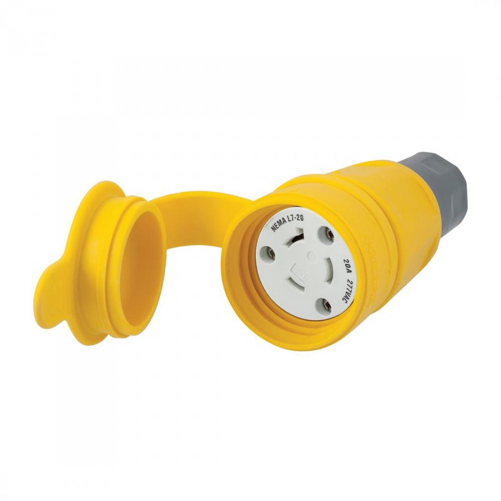 Wiring Device-Kellems Twist-Lock® HBL27W49 Female Grounding Insulated Standard Locking Connector, 277 VAC, 20 A, 2 Poles, 3 Wires, Yellow