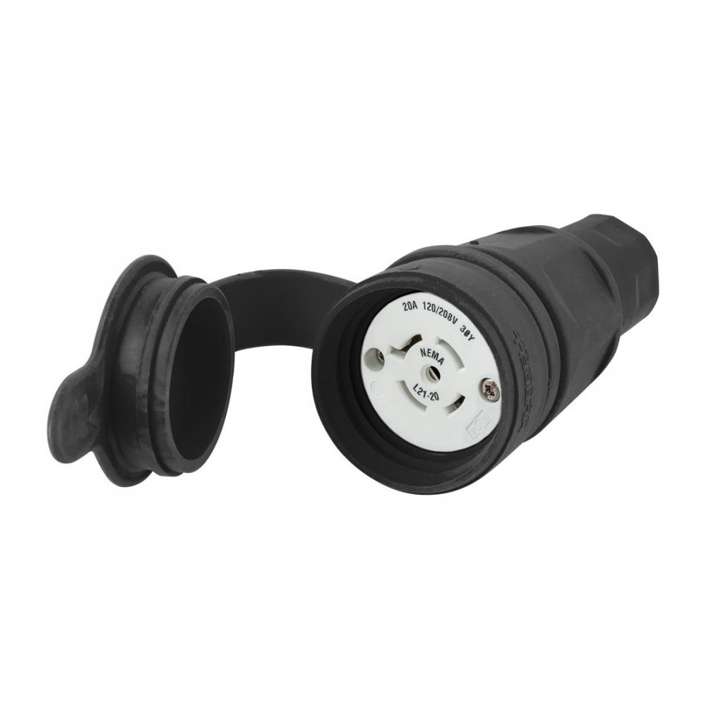 Wiring Device-Kellems Twist-Lock® Elastogrip® HBL27W81BK 3-Phase Dusttight Insulated Isolated Ground Standard Watertight Locking Female Connector, 120Y/208 VAC, 20 A, 4 Poles, 5 Wires, Black