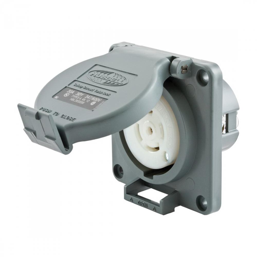 Hubbell® Twist-Lock® Safety-Shroud® HBL2830SW Shrouded Watertight Locking Receptacle, 347/600 VAC, 30 A, 4 Poles, 5 Wires, Gray