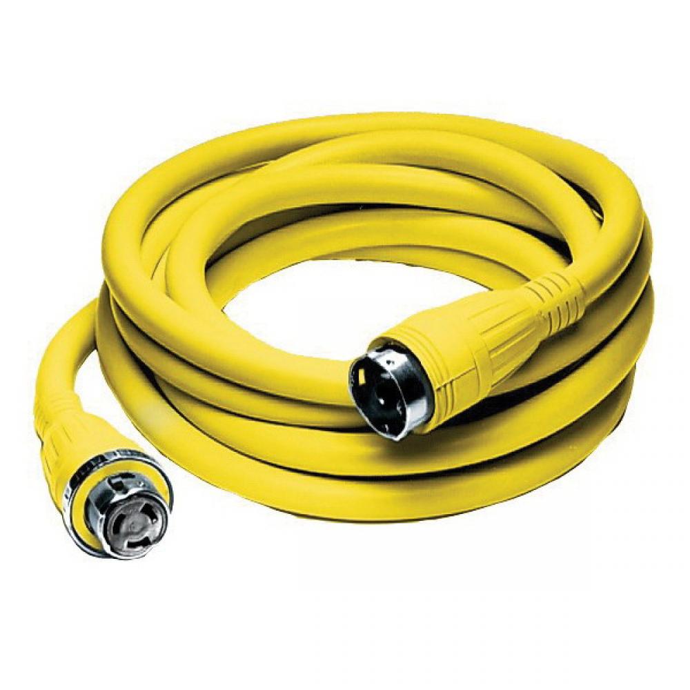 Wiring Device-Kellems Twist-Lock® HBL61CM42 1-Phase 3-Pole 4-Wire Grounding Marine Grade Pre-Wired Standard Ship to Shore Power Cable Set With Molded Male/Female End, 125/250 VAC, 50 A, 12500 W, 0.845 in Dia, 25 ft L Cord, 4 Conductors