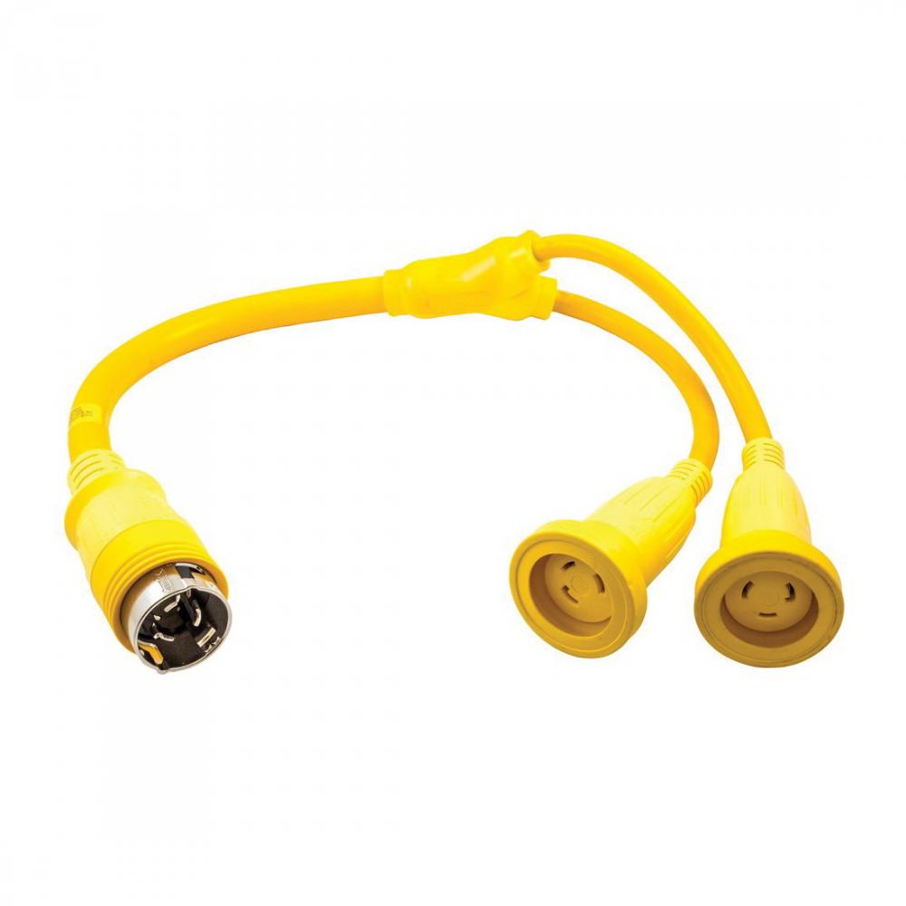 Wiring Device-Kellems HBL64CM57 Corrosion Resistant Insulated Marine Grade Y-Molded Adapter, 125 VAC, 30 A, 2 Outlets, Twist-Lock® (2) 30 A 125 VAC 2-Pole 3-Wire Locking Female Receptacle Connector