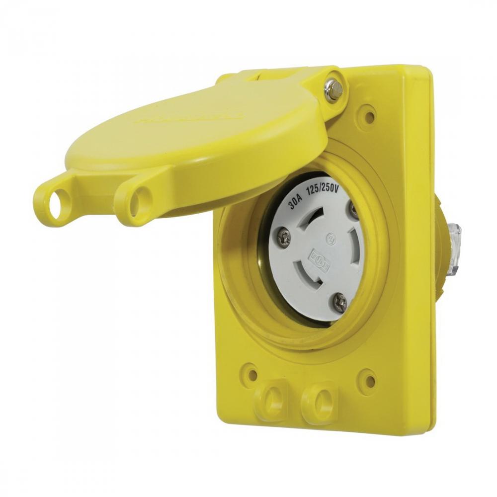 Wiring Device-Kellems Twist-Lock® HBL69W08 3-Phase Non-Grounding Watertight Locking Receptacle With Lift Cover, 30 A