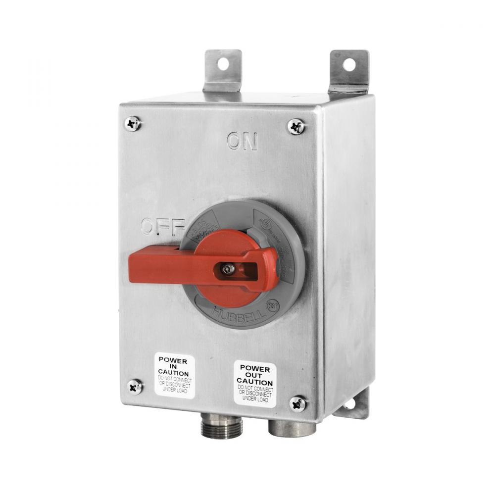 Wiring Device-Kellems Circuit-Lock® MotorQuick® HBLDS3SSMQR2 Square Top Standard Unfused Enclosed Disconnect Switch With LINKOSITY® (1) Pre-Wired Male, 600 VAC, 30 A, 15 hp, 3 Poles