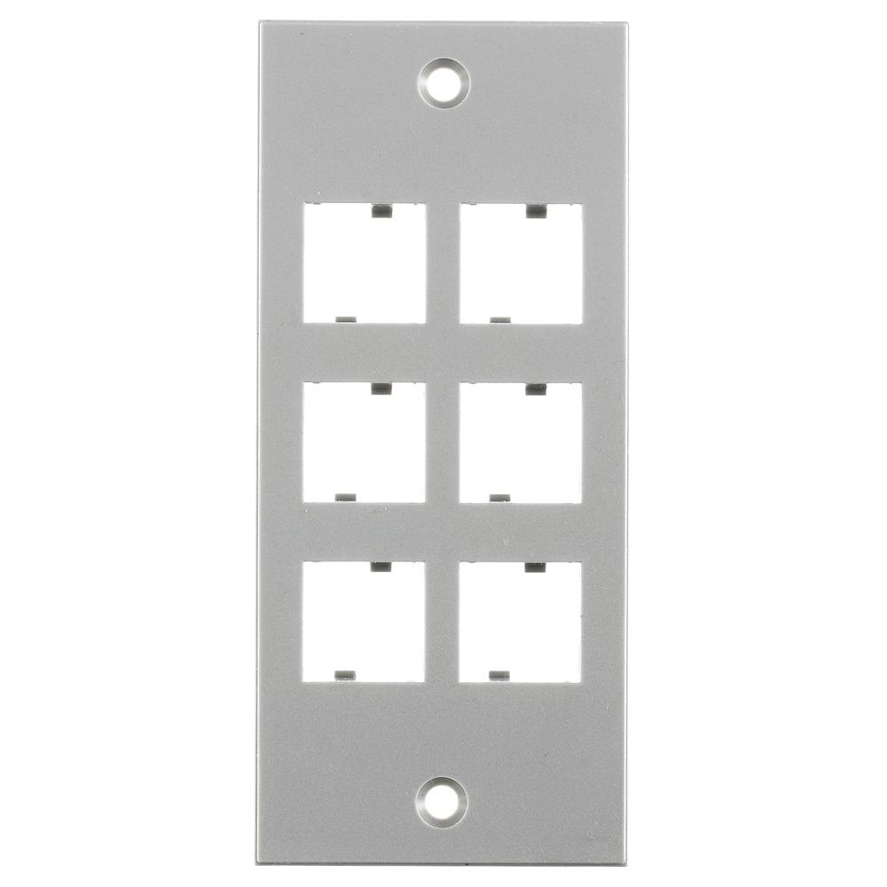 Wiring Device-Kellems HBLNO309SGY Non-Metallic Rectangular Standard Modular Faceplate, 1 Gang, 6 Ports, Threaded Mount, PVC