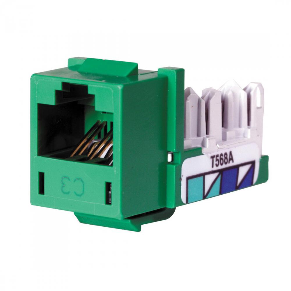 Wiring Device-Kellems XCELERATOR™ HXJ3GN 8-Position Standard Universal A/B Jack, Cat 3 Module, Keystone Mount, Thermoplastic, Green
