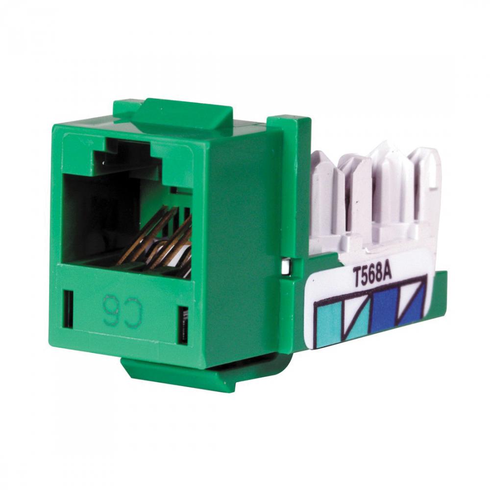 Wiring Device-Kellems XCELERATOR™ NEXTSPEED® SPEEDGAIN® HXJ6GN25 8-Position Standard Universal A/B Jack, Cat 6 Module, Keystone Mount, Green