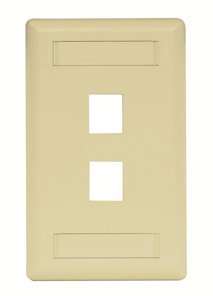 Wiring Device-Kellems iSTATION™ IFP12TIV1D1 Molded Rear Load Standard Keystone Faceplate With Label Field, 1 Gang, 2 Ports, Voice/Data/Video Module, Threaded Mount, ABS