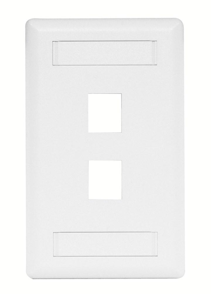 Wiring Device-Kellems iSTATION™ IFP12W Molded Rear Load Standard Keystone Faceplate With Label Field, 1 Gang, 2 Ports, Voice/Data/Video Module, Threaded Mount, ABS