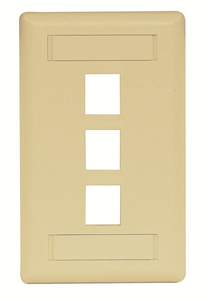 Wiring Device-Kellems iSTATION™ IFP13EI Molded Rear Load Standard Keystone Faceplate With Label Field, 1 Gang, 3 Ports, Voice/Data/Video Module, Threaded Mount, ABS