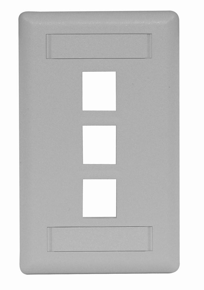 Wiring Device-Kellems iSTATION™ IFP13GY Molded Rear Load Standard Keystone Faceplate With Label Field, 1 Gang, 3 Ports, Voice/Data/Video Module, Threaded Mount, ABS