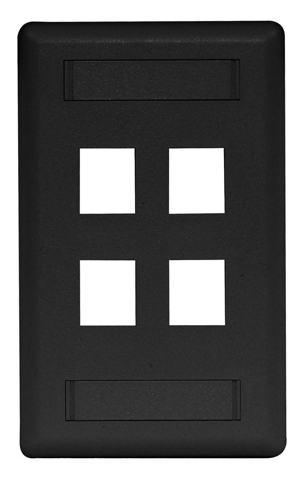Wiring Device-Kellems iSTATION™ IFP14BK Molded Rear Load Standard Keystone Faceplate With Label Field, 1 Gang, 4 Ports, Voice/Data/Video Module, Threaded Mount, ABS