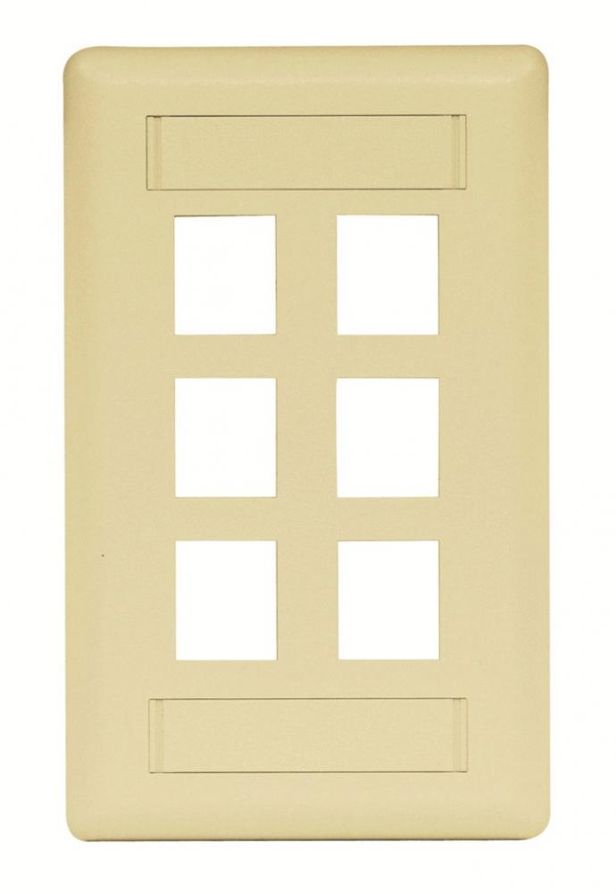 Wiring Device-Kellems iSTATION™ IFP16TI Molded Rear Load Standard Keystone Faceplate With Label Field, 1 Gang, 6 Ports, Voice/Data/Video Module, Threaded Mount, ABS