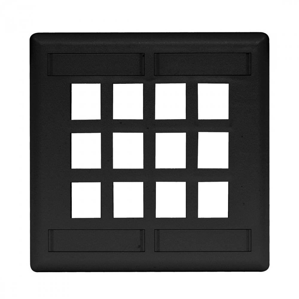 Wiring Device-Kellems iSTATION™ IFP212BK Keystone Standard Rear Loading Vertical Faceplate With Label Field, 2 Gangs, 12 Ports, Threaded Mount, ABS