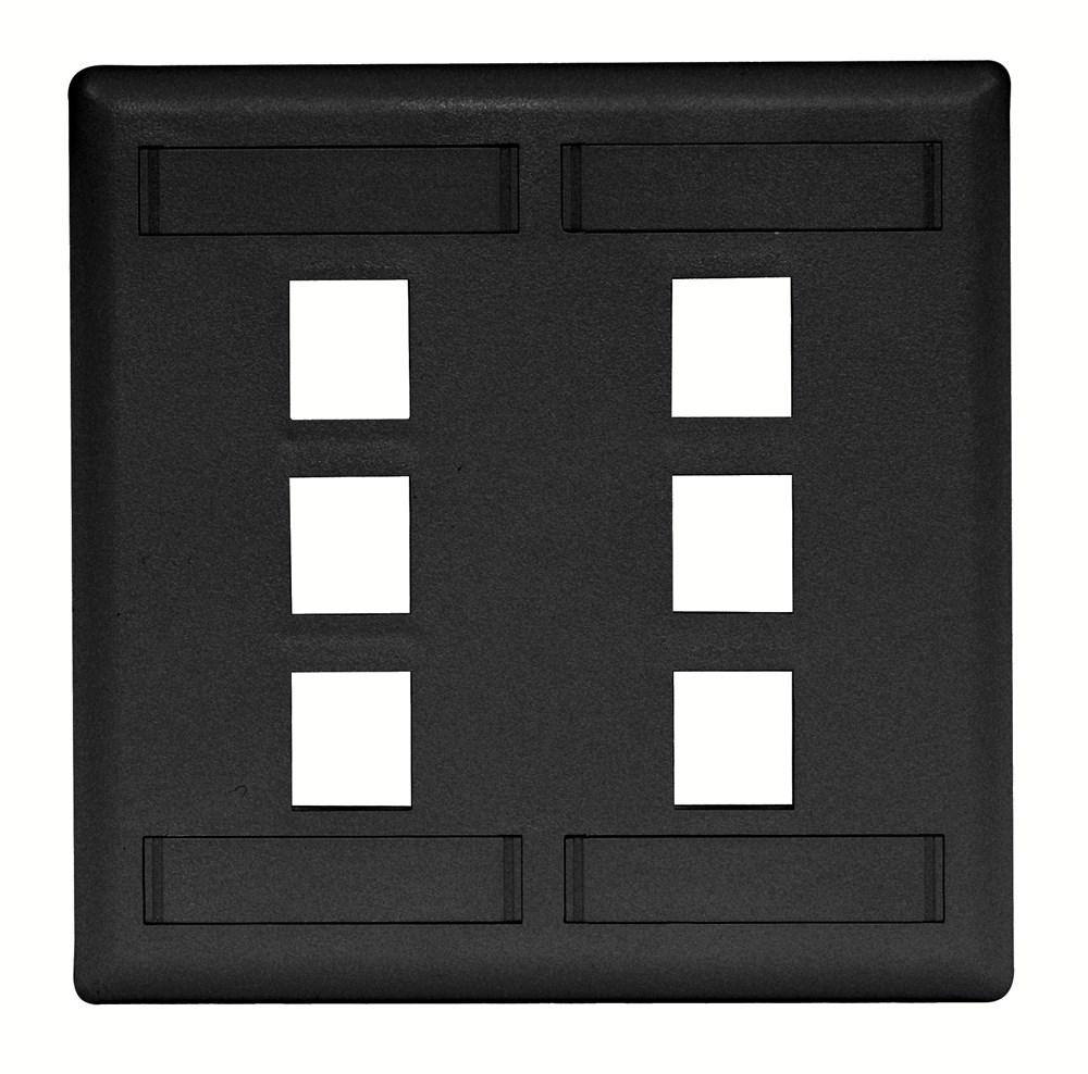 Wiring Device-Kellems iSTATION™ IFP26BK Molded Rear Load Standard Keystone Faceplate With Label Field, 2 Gangs, 6 Ports, Voice/Data/Video Module, Threaded Mount, ABS