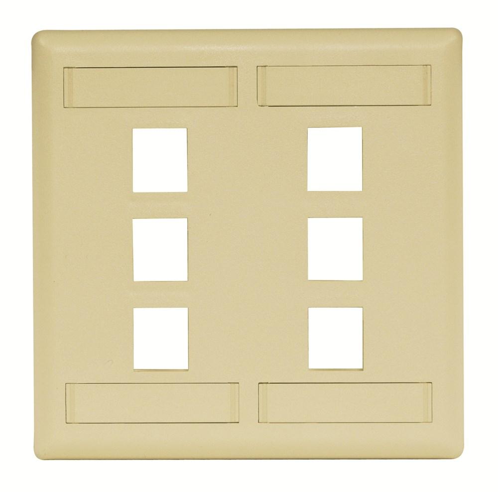 Wiring Device-Kellems iSTATION™ IFP26EI Molded Rear Load Standard Keystone Faceplate With Label Field, 2 Gangs, 6 Ports, Voice/Data/Video Module, Threaded Mount, ABS