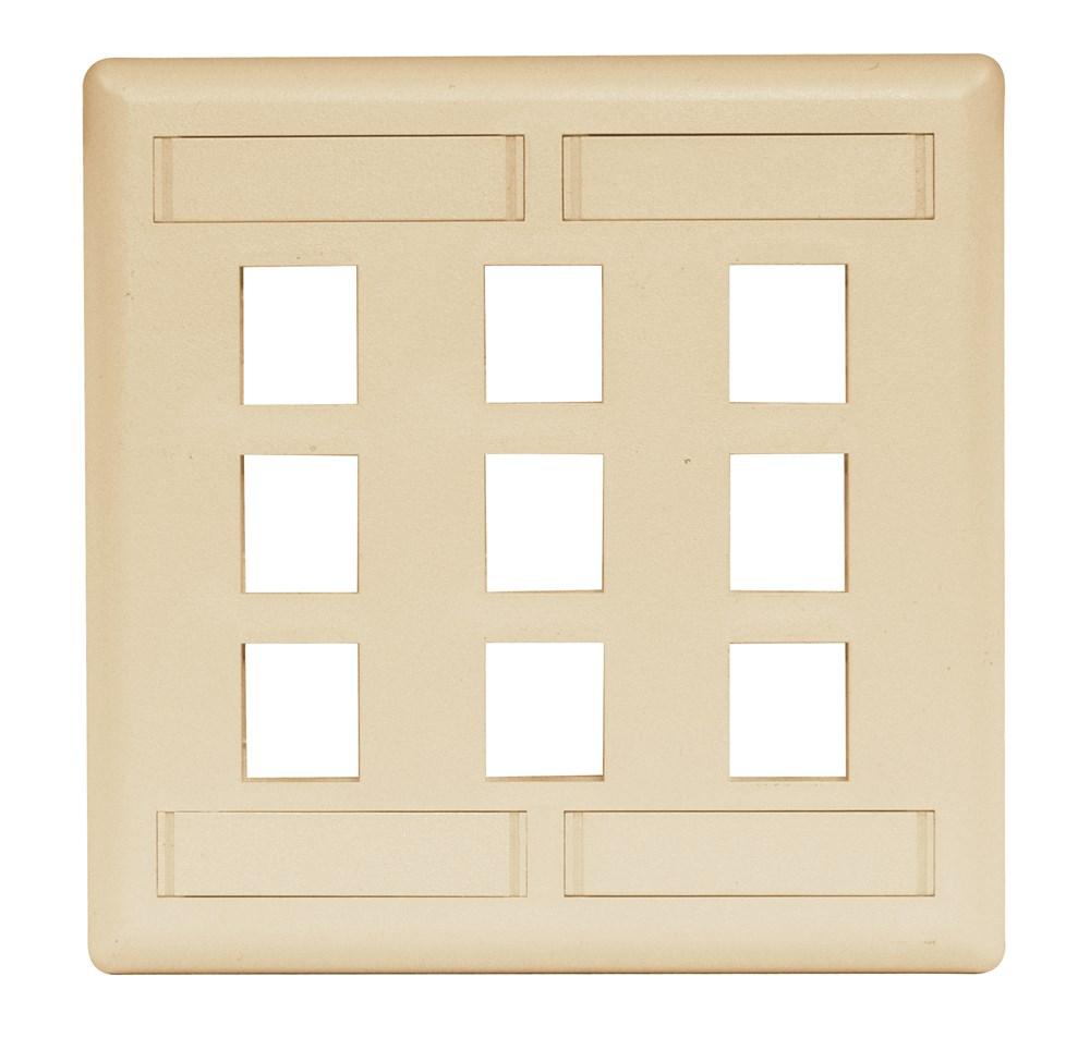 Wiring Device-Kellems iSTATION™ IFP29EI Molded Rear Load Standard Keystone Faceplate With Label Field, 2 Gangs, 9 Ports, Voice/Data/Video Module, Threaded Mount, ABS