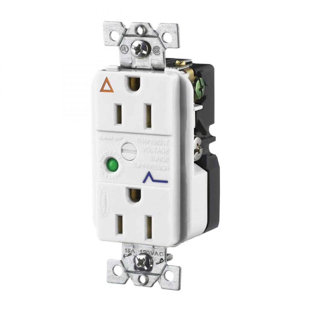 Wiring Device-Kellems SpikeShield® IG5262WSA Isolated Ground Standard Duplex Receptacle With Light, Alarm, 15 A at 125 VAC, 60 Hz