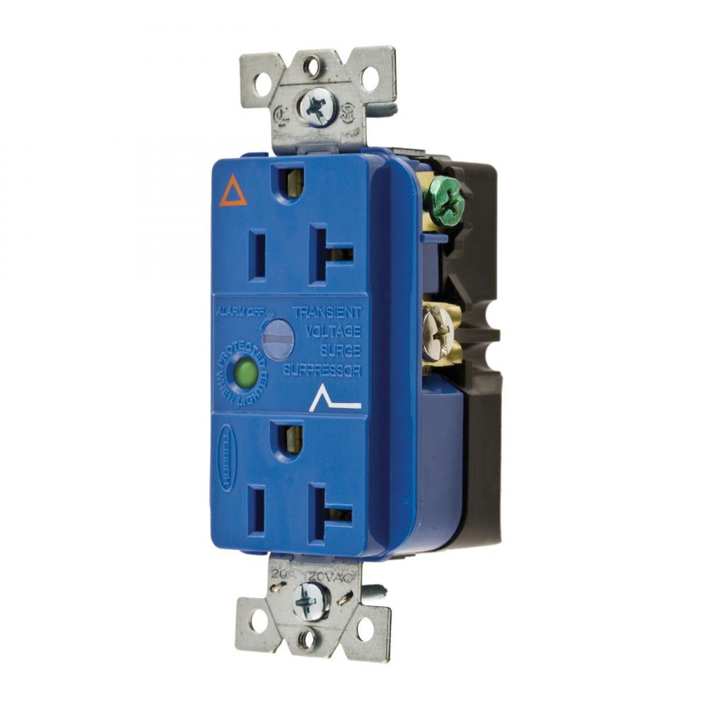 Wiring Device-Kellems SpikeShield® IG5362SA Isolated Ground Standard Duplex Receptacle With Light, Alarm, 20 A at 125 VAC, 60 Hz