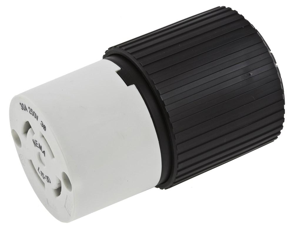 Wiring Device-Kellems Hubbell Pro™ Twist-Lock® L1520C 3-Phase Female Grounding Standard Locking Connector, 250 VAC, 20 A, 3 Poles, 4 Wires, Black/White