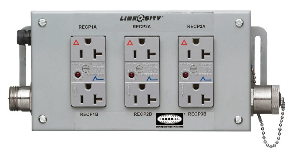 Wiring Device-Kellems LINKOSITY® M003SG00P 4-Gang Power System Distribution Assembly With Pass Thru, 125 VAC, 20 A, 3 Outlets, Threaded Mount