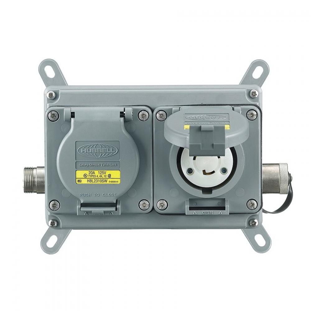 Wiring Device-Kellems LINKOSITY® MLWF202P 2-Gang Power System Distribution Assembly With Pass Thru, 125 VAC, 20 A, 2 Outlets, Threaded Mount