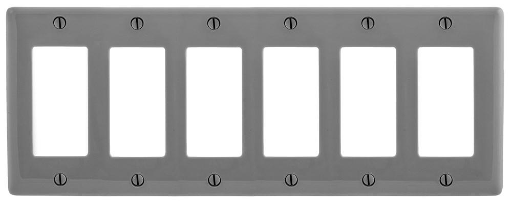 Wiring Device-Kellems NP266GY Standard Wallplate, 6 Gangs, 4.62 in H x 11.93 in W, Nylon, Gray