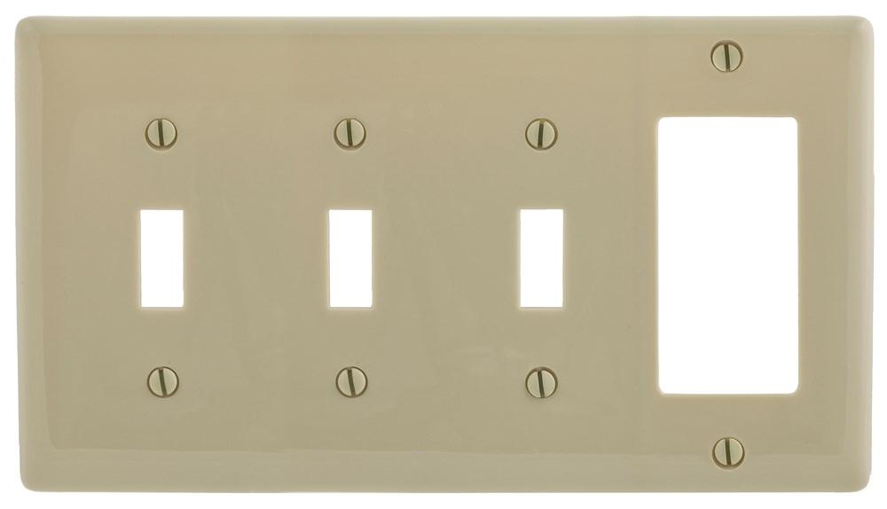 Wiring Device-Kellems NP326I Standard Combination Wallplate, 4 Gangs, 4.62 in H x 8.31 in W, Nylon, Ivory