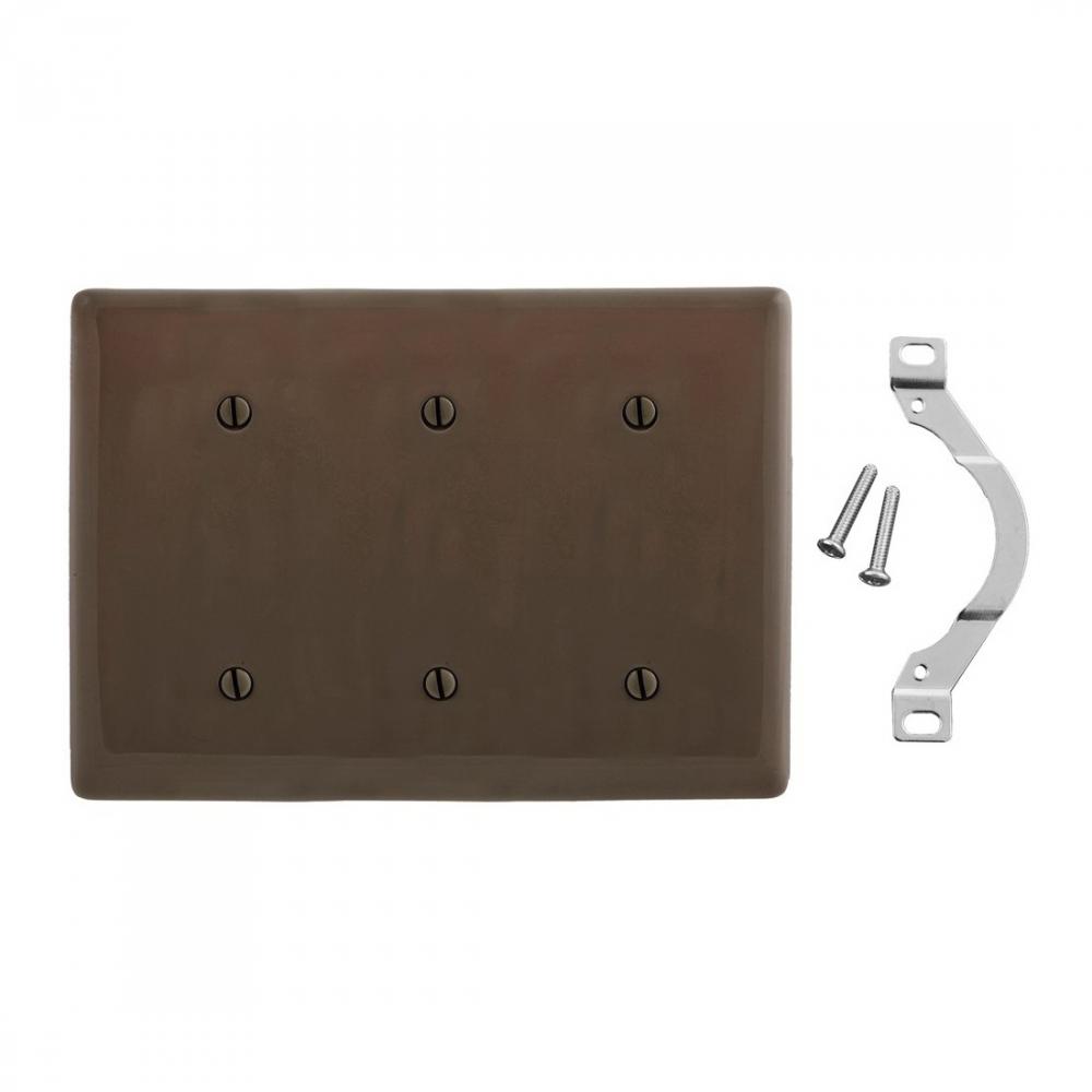 Wiring Device-Kellems NP34 Standard Blank Wall Plate, 3 Gangs, Brown, 4.63 in H x 6.5 in W, Nylon