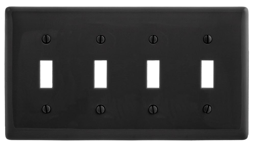 Wiring Device-Kellems NP4BK Standard Wallplate, 4 Gangs, Black, 4.62 in H x 8.31 in W x 0.25 in D, Nylon