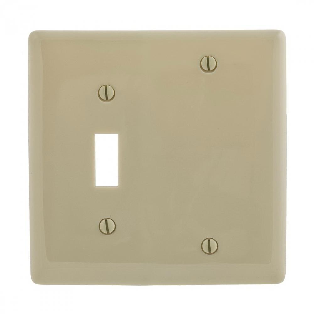 Wiring Device-Kellems NPJ113I Medium Size Combination Wallplate, 2 Gangs, Ivory, 4.94 in H x 4.88 in W, Nylon