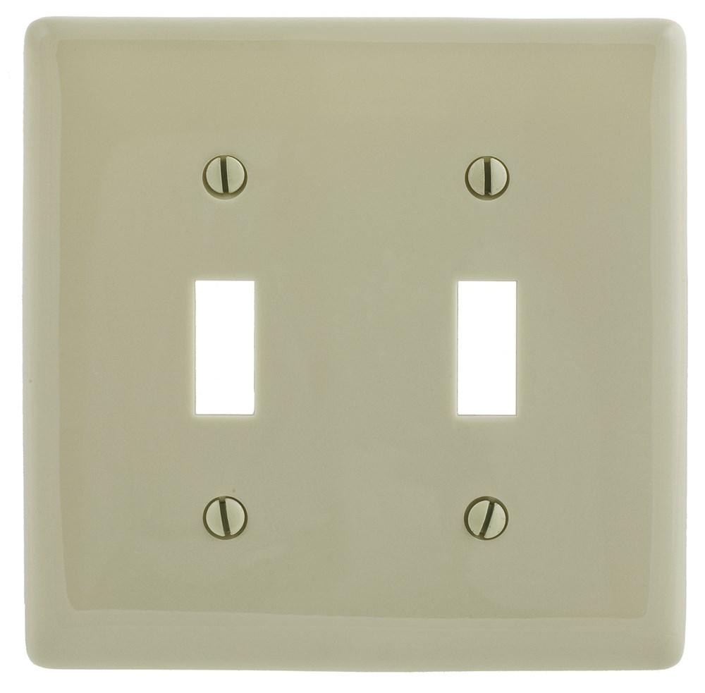 Wiring Device-Kellems NPJ2I Mid Sized Wallplate, 2 Gangs, Ivory, 4.88 in H x 4.94 in W x 0.25 in D, Nylon
