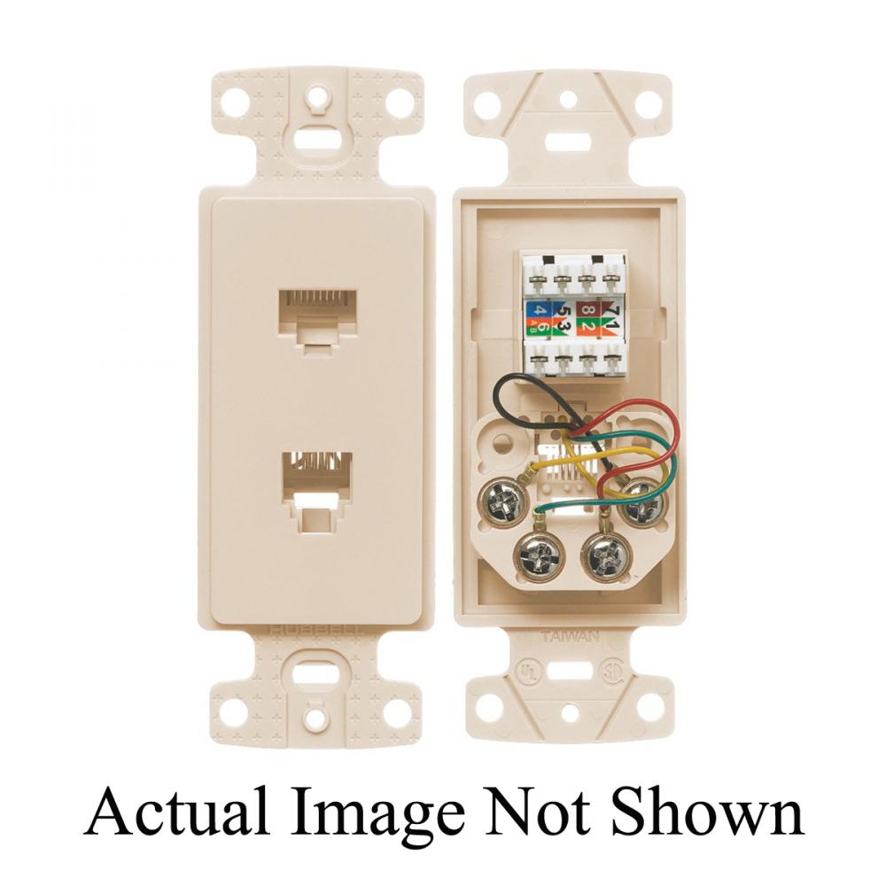 Wiring Device-Kellems netSELECT® NS784LA Standard Molded-In Plate With (1) Cat 5e Jack, (1) 6-Position 4-Conductor Jack, Threaded Mount, Thermoplastic