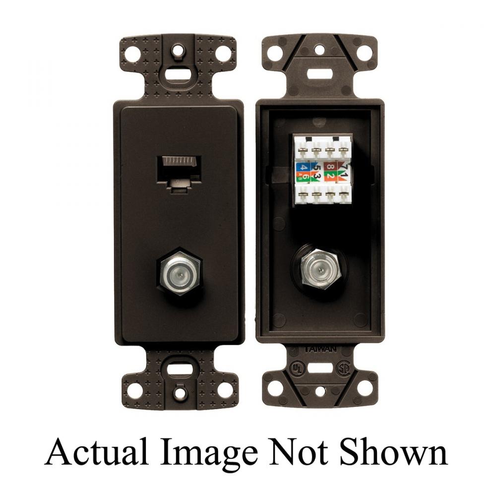 Wiring Device-Kellems netSELECT® NS785 Standard Female to Female Molded-In Plate With (1) F-Coax Connector, (1) Cat 5e Jack, Threaded Mount, Thermoplastic