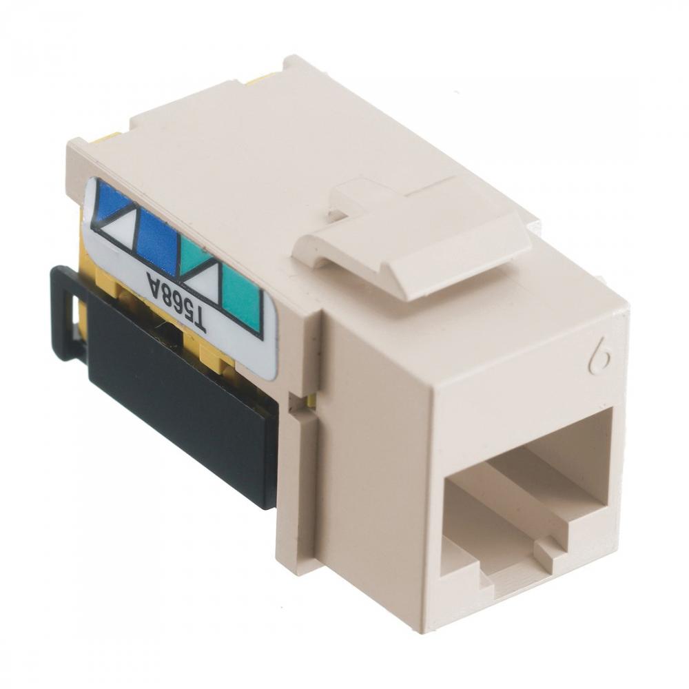 Wiring Device-Kellems netSELECT® NEXTSPEED® NSJ6LA25 8-Position Standard Universal A/B Modular Jack Insert, Cat 6 Module, Threaded Mount, Light Almond
