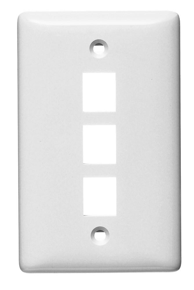 Wiring Device-Kellems netSELECT® NSP13W Rear Load Multimedia Faceplate With Jack, 1 Gang, 3 Ports, Audio/Video/Voice/Data Module, Threaded Mount, ABS
