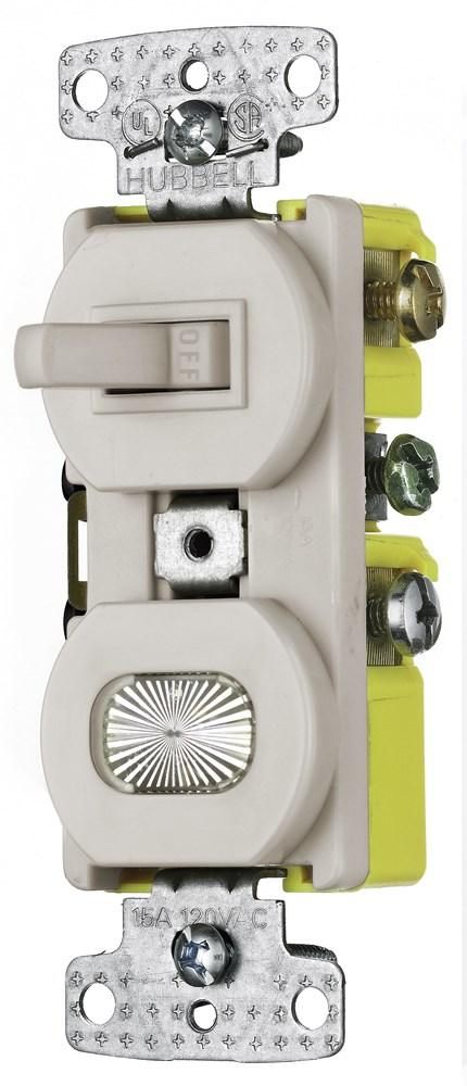 Wiring Device-Kellems tradeSELECT® RC109LA 2-Position Illumination Standard Traditional Switch and Pilot Light Combination Device, 120 VAC, 15 A, 1800 W