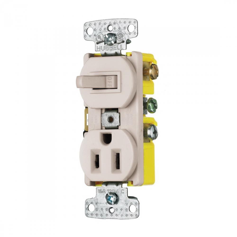 Wiring Device-Kellems tradeSELECT™ RC308LATR 3-Way Snap Action Tamper Resistant Toggle Combination Switch and Receptacle, 15 A at 120/125 VAC, 2 Poles, 3 Wires