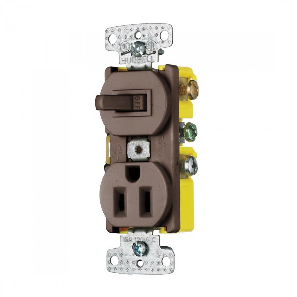 Wiring Device-Kellems tradeSELECT™ RC308TR 3-Way Snap Action Tamper Resistant Toggle Combination Switch and Receptacle, 15 A at 120/125 VAC, 2 Poles, 3 Wires