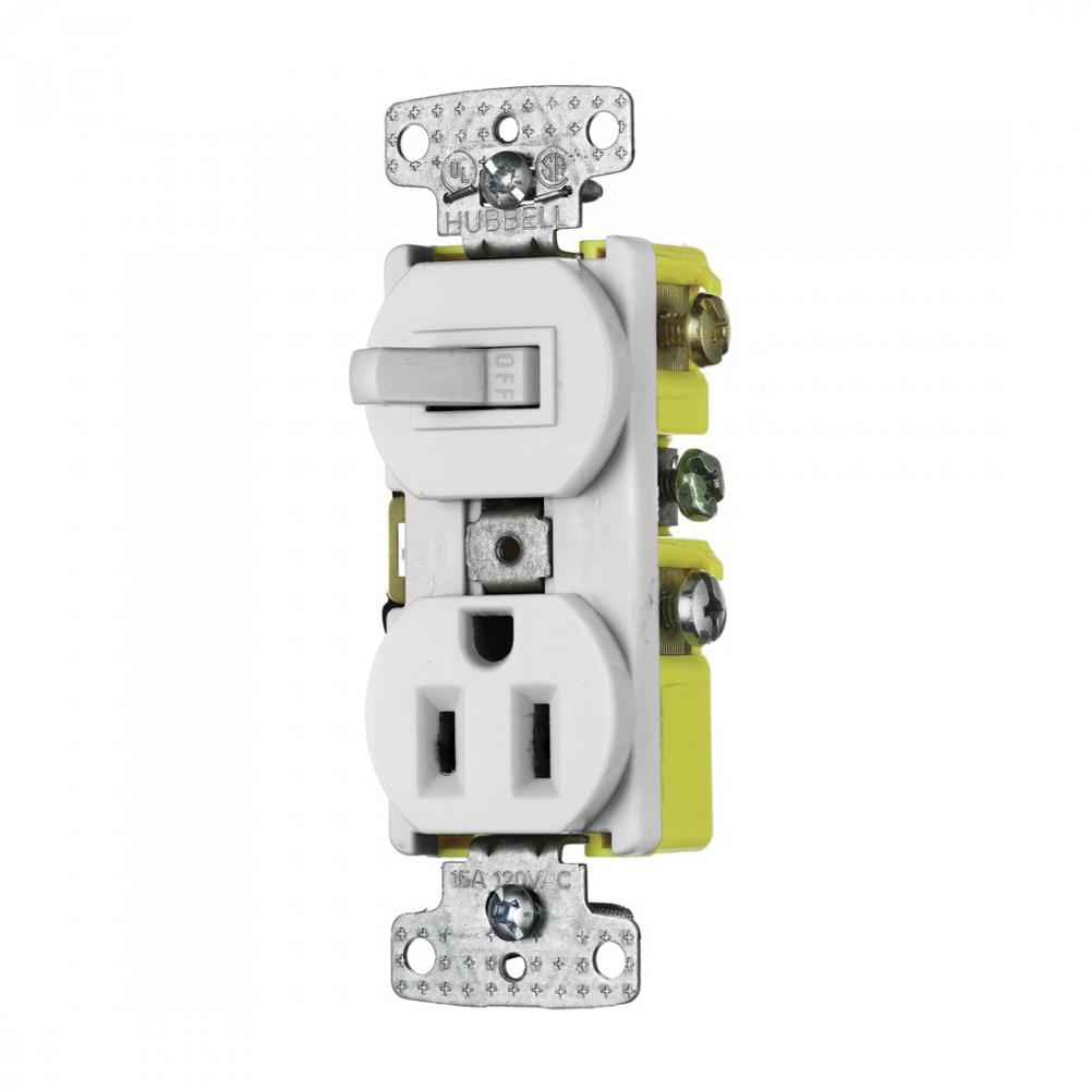Wiring Device-Kellems tradeSELECT® RC308W 3-Way Snap Action Toggle Switch and Receptacle, 15 A at 120/125 VAC, 2 Poles, 3 Wires