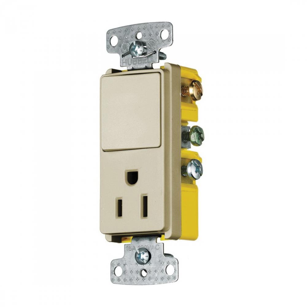 Wiring Device-Kellems TRADESELECT™ RCD308I Decorator Combination Quiet Rocker Switch and Receptacle, 15 A at 125 VAC, 1 Poles, 3 Wires, 14 to 12 AWG Wire