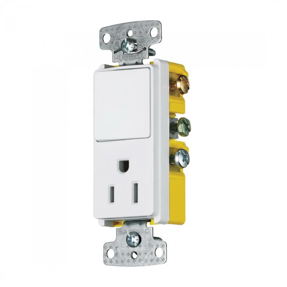 Wiring Device-Kellems tradeSELECT™ RCD308W 3-Way Decorator Rocker Snap Action Standard Combination Switch and Receptacle, 15 A at 120/125 VAC, 2 Poles, 3 Wires, 14 to 12 AWG Cu Wire