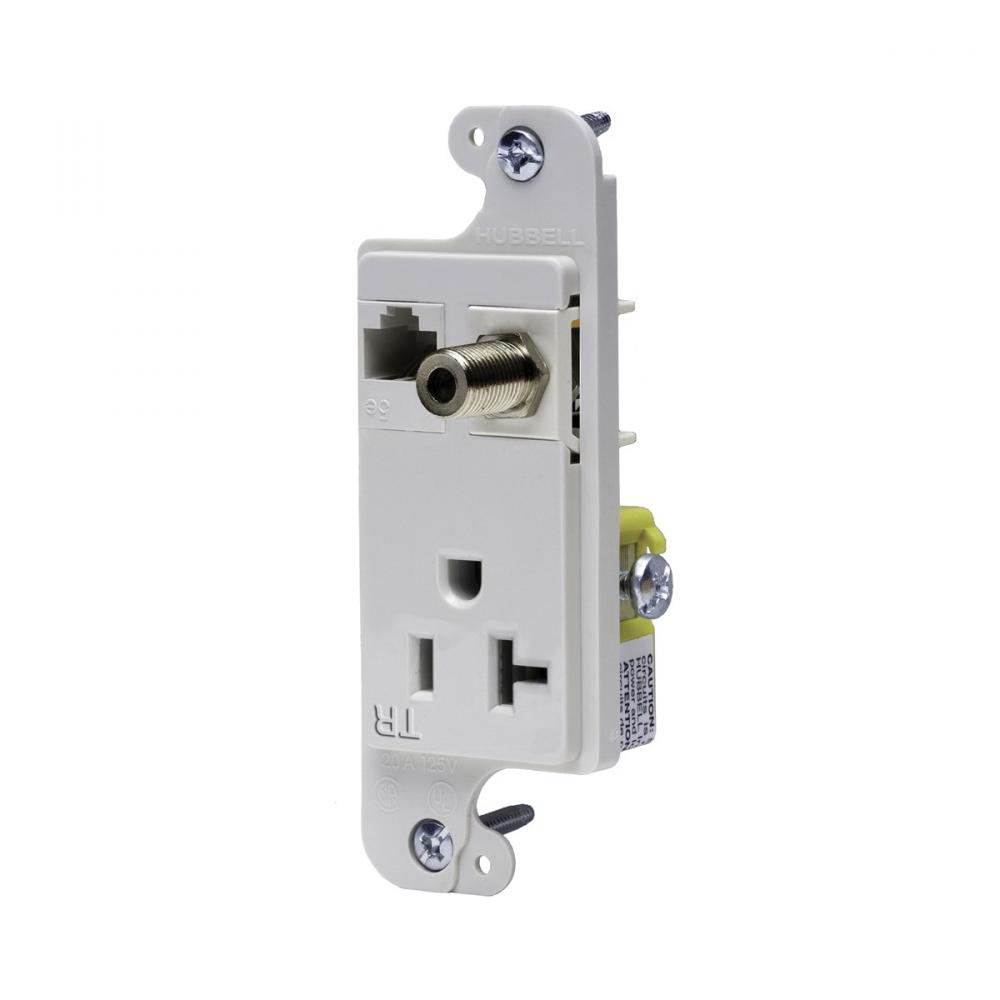Wiring Device-Kellems JLOAD® RJ620WTR 1-Gang Tamper Resistant Multimedia Outlet, F-Connector/Power Receptacle Outlet, Threaded Mount, NEMA 5-20R Configuration