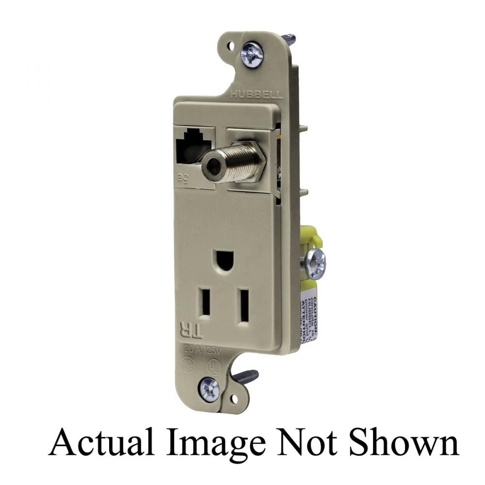 Wiring Device-Kellems JLOAD® RJ650ALTR 1-Gang Tamper Resistant Multimedia Outlet, F-Connector/Power Receptacle Outlet, Threaded Mount, NEMA 5-15R Configuration
