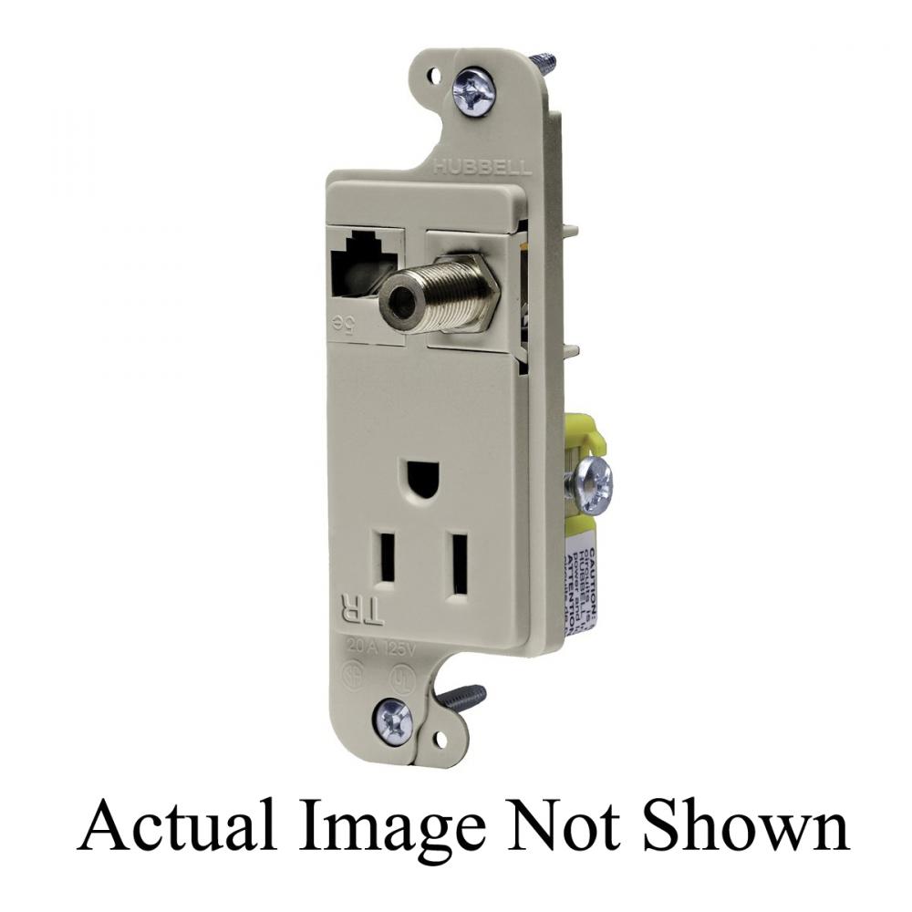 Wiring Device-Kellems JLOAD® RJ650LATR 1-Gang Tamper Resistant Multimedia Outlet, F-Connector/Power Receptacle Outlet, Threaded Mount, NEMA 5-15R Configuration