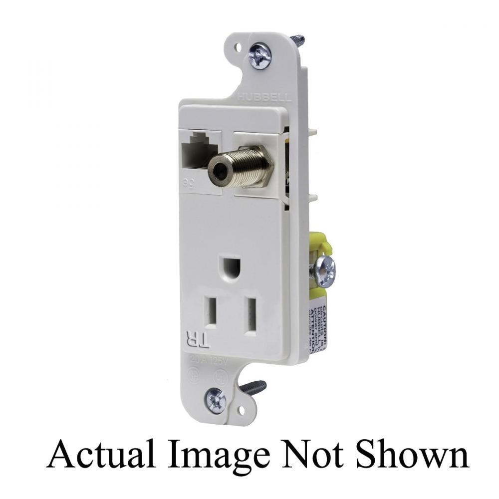 Wiring Device-Kellems JLOAD® RJ650WTR 1-Gang Tamper Resistant Multimedia Outlet, F-Connector/Power Receptacle Outlet, Threaded Mount, NEMA 5-15R Configuration