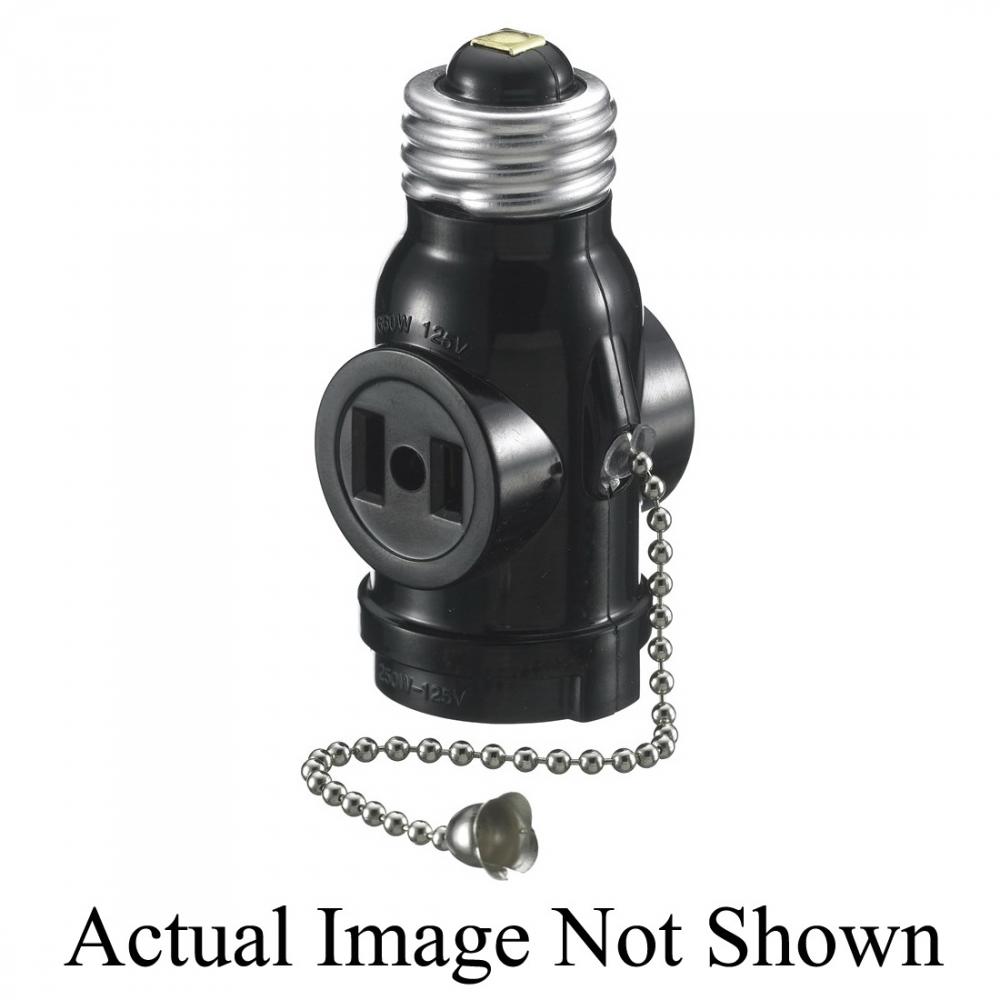 Wiring Device-Kellems RL202 3-Wire Grounding Replacement Residential Grade Standard Lamp Adapter With (2) 2-Prong Outlets, Pull Chain, 660 W, 125/250 VAC, 10/15 A, Medium Incandescent Lamp