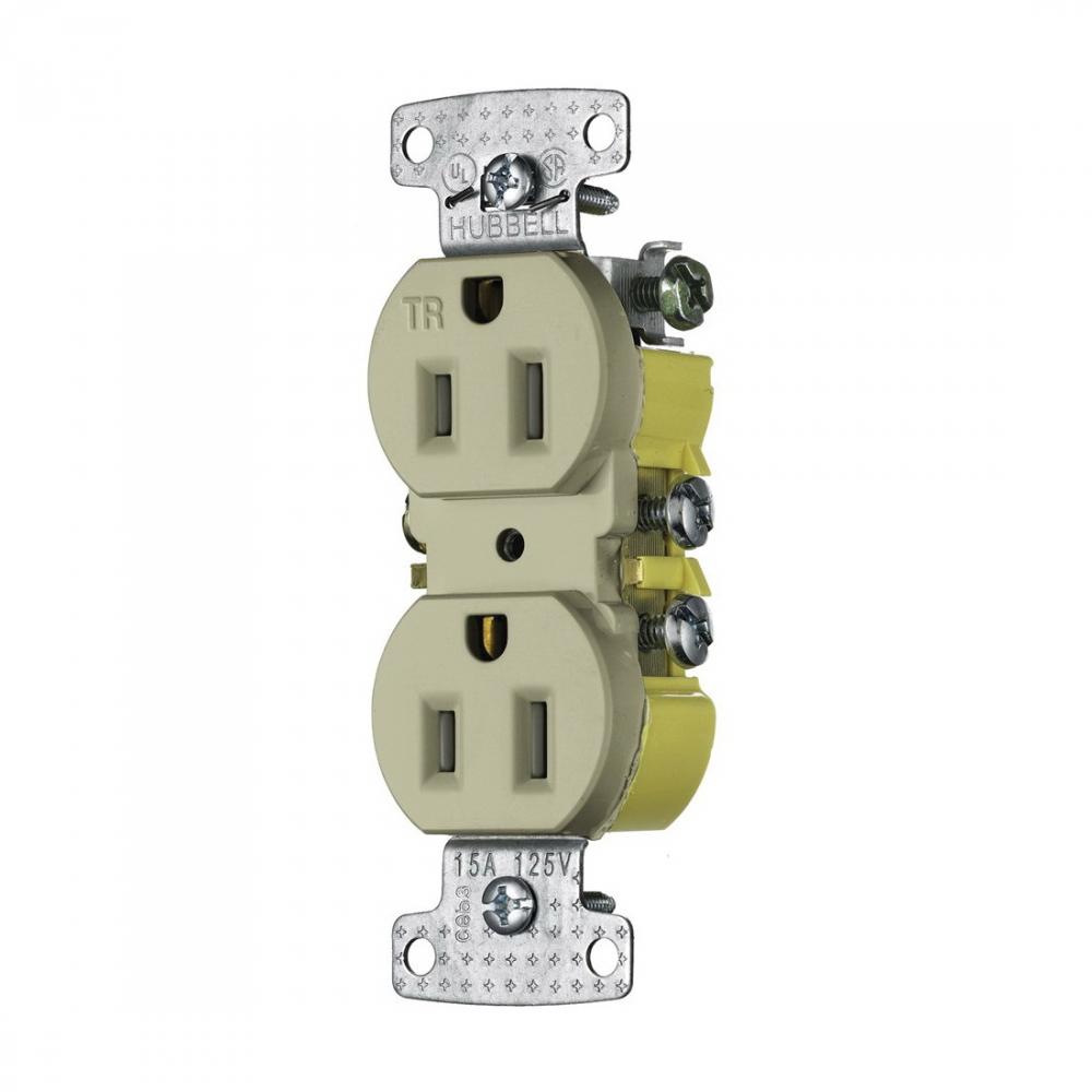 Wiring Device-Kellems tradeSELECT® RR15SITR Duplex Standard Traditional Tamper Resistant Straight Blade Receptacle, 125 VAC, 15 A, 2 Poles, 3 Wires, Ivory