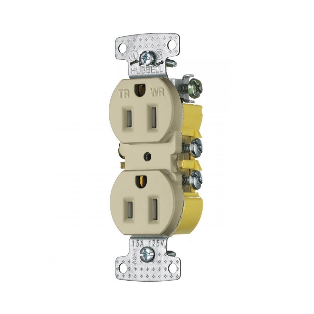 Wiring Device-Kellems tradeSELECT® RR15SIWRTR Duplex Standard Traditional Tamper/Weather Resistant Straight Blade Receptacle, 125 VAC, 15 A, 2 Poles, 3 Wires, Ivory