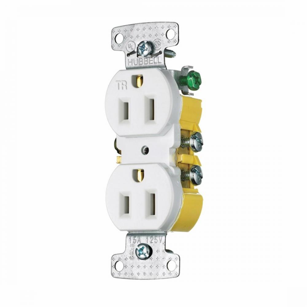 Wiring Device-Kellems tradeSELECT® RR15SWTR Duplex Self-Grounding Standard Tamper Resistant Traditional Straight Blade Receptacle, 125 VAC, 15 A, 2 Poles, 3 Wires, White
