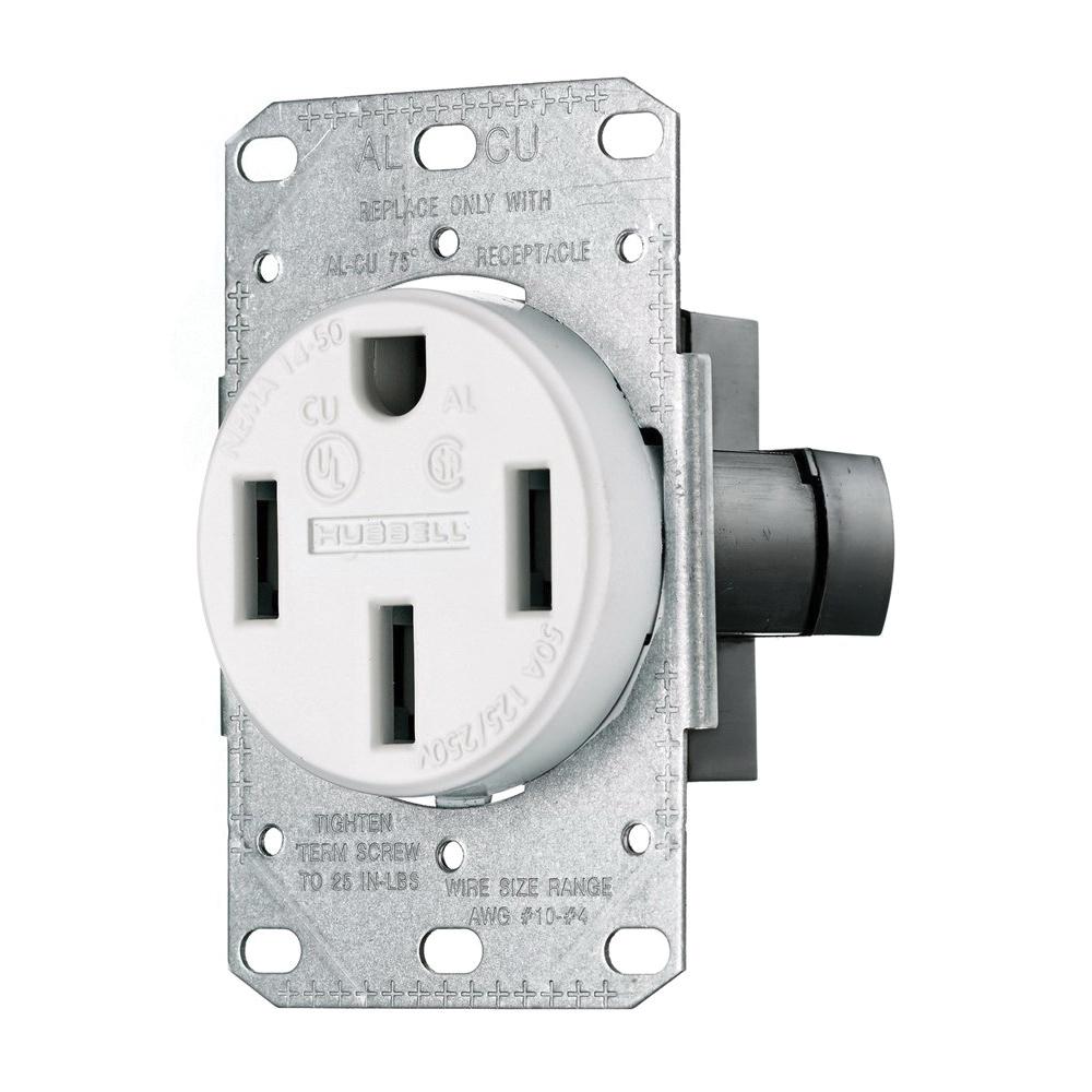 Wiring Device-Kellems tradeSELECT® RR450FW Flush Mounted Single Standard Straight Blade Power Receptacle, 125/250 VAC, 50 A, 3 Poles, 4 Wires, White